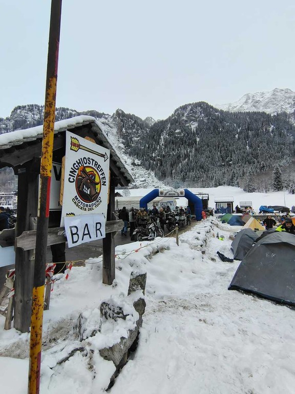 Il cuore del raduno è stato l’area allestita nei prati adiacenti, dove oltre cinquanta tende sono state montate per accogliere i motociclisti che hanno scelto di pernottare sul posto, riscaldati solo dalla paglia. Tra bracieri accesi, musica, buon cibo e birra, tanti i momenti di festa e socialità, con il grande tendone riscaldato, posizionato di fronte alla pista da sci.