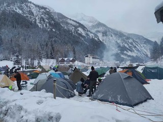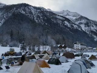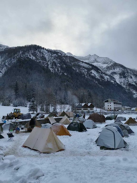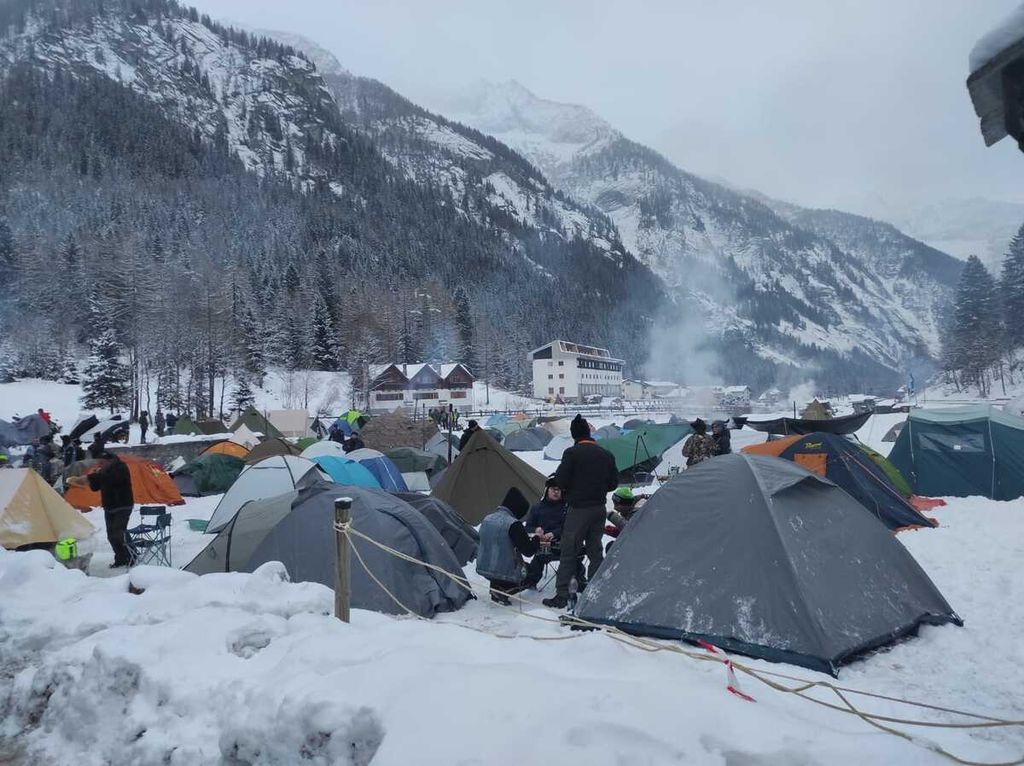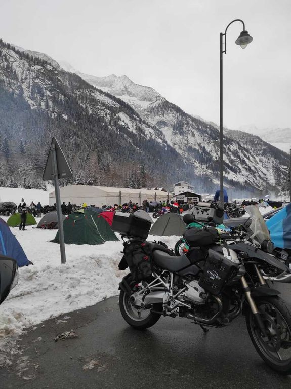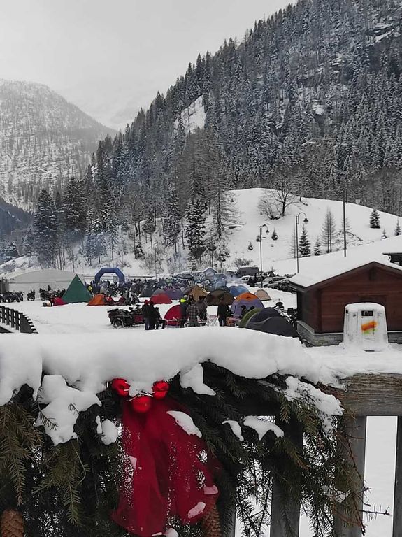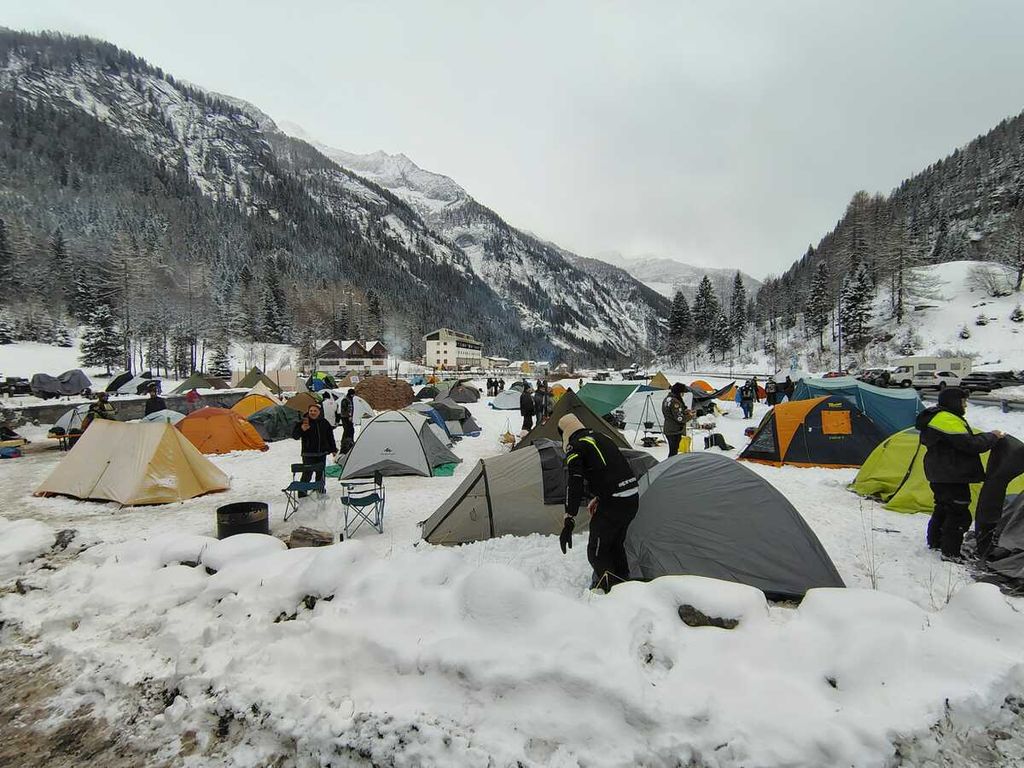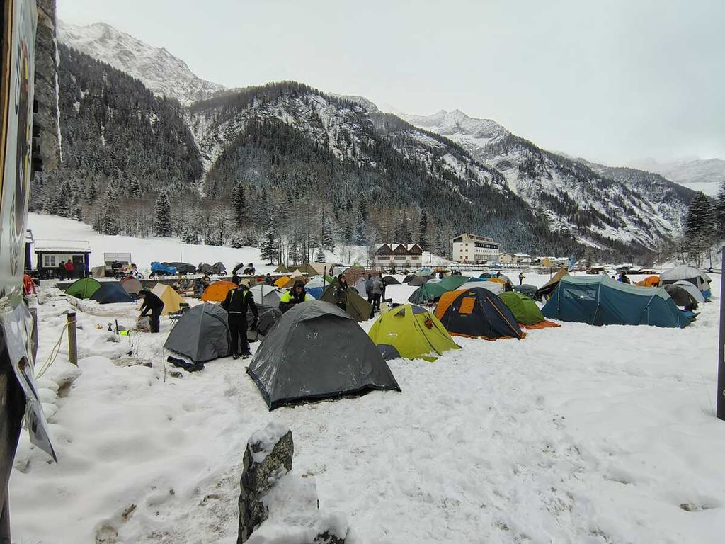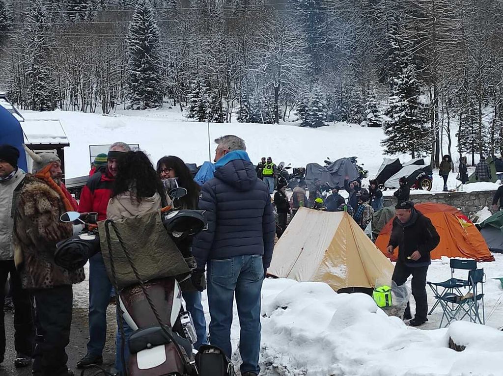 Il cuore del raduno è stato l’area allestita nei prati adiacenti, dove oltre cinquanta tende sono state montate per accogliere i motociclisti che hanno scelto di pernottare sul posto, riscaldati solo dalla paglia. Tra bracieri accesi, musica, buon cibo e birra, tanti i momenti di festa e socialità, con il grande tendone riscaldato, posizionato di fronte alla pista da sci.