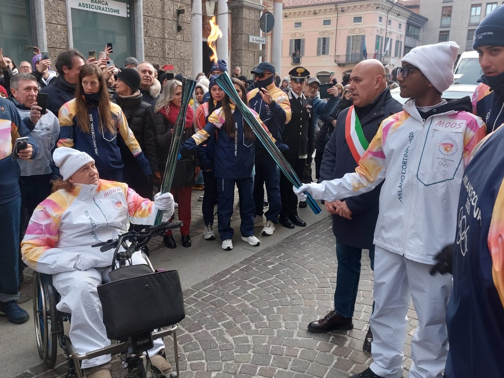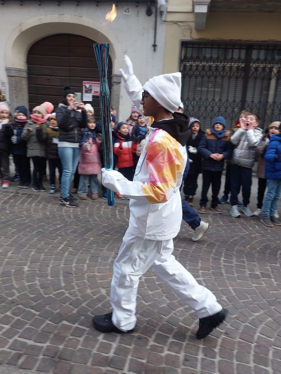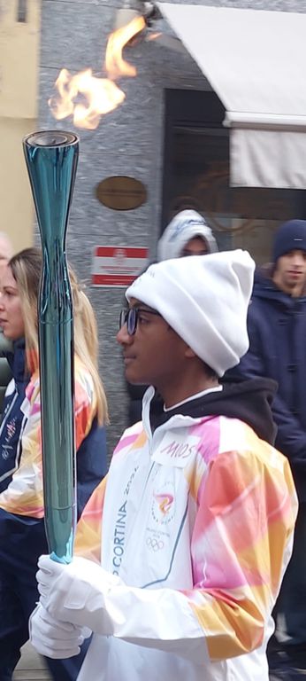 Raji Godio, ragazzo quindicenne di Beura di origine etiope che frequenta il liceo sportivo a Domodossola ha potuto incarnare lo spirito olimpico questa mattina portando per 200 metri a Borgomanero la fiamma olimpica di Milano Cortina 2026.