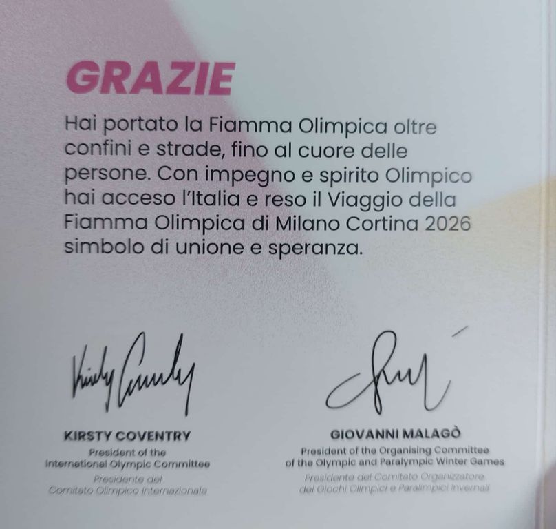 Di quest'esperienza Raji oltre ai ricordi, che rimarranno per sempre nel suo cuore, ha avuto in dono la tuta che ha indossato portando la fiamma olimpica, una spilla e una lettera firmata dal presidente del comitato olimpico internazionale Kirsty Coventry e da Giovanni Malagò presidente del comitato organizzatore dei Giochi Olimpici e Paraolimpici invernali questo il testo : "Grazie per aver portato la Fiamma Olimpica oltre i confini e le strade del cuore delle persone. Con impegno e spirito olimpico hai acceso l'Italia e reso il Viaggio della Fiamma Olimpica di Milano Cortina 2026 simbolo di unione e speranza".