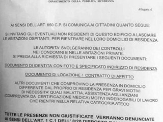 L’avviso reca l’intestazione del Ministero dell’Interno, ma si tratta di una truffa: si tratterebbe di ladri che, tramite questa comunicazione, tentano di far allontanare le persone e introdursi nelle case. “Si invitano gli eventuali non residenti di questo edificio - si legge nel falso avviso del ministero - a lasciare le abitazioni ospitanti, per rientrare nel loro domicilio di residenza. Le autorità svolgeranno dei controlli nei condomini e nelle abitazioni private. Si prega di presentare i seguenti documenti: documento d’identità con foto e specificato indirizzo di residenza, documento di locazione o contratto d’affitto”. I truffatori specificano anche che “tutte le presenze non giustificate verranno denunciate”.