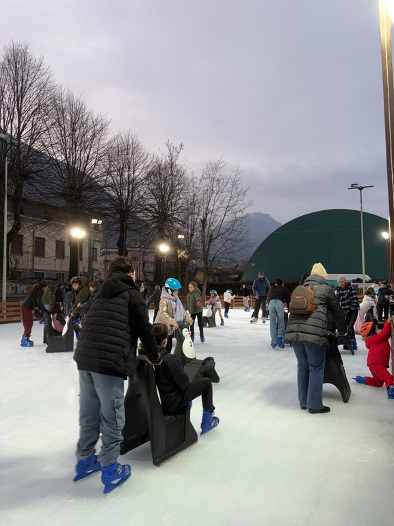 L’iniziativa nasce con l’obiettivo di offrire ai più piccoli – ma non solo – la possibilità di divertirsi sul ghiaccio senza dover raggiungere la montagna, in un’area sicura e controllata. I genitori possono così vigilare sui propri bambini comodamente, gustando una bibita o un aperitivo.