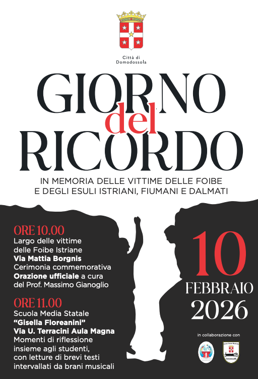 La commemorazione si aprirà alle ore 10.00 presso il Largo delle vittime delle Foibe Istriane, in via Mattia Borgnis, con una cerimonia ufficiale promossa dal Comune di Domodossola. Durante il momento commemorativo sarà pronunciata l’orazione ufficiale a cura del professor Massimo Gianoglio, occasione di riflessione storica e civile su una pagina complessa e dolorosa della nostra storia nazionale.