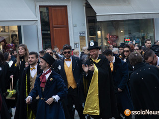 Il momento più atteso, poi, nel pomeriggio, con l’evento che segna ufficialmente l’apertura della nuova edizione del Carnevale: la consegna delle chiavi della città al Togn e la Cia da parte del sindaco. Le maschere di Domodossola, quest’anno impersonate da Alberto Comana e Cecilia Brillante, sono arrivate in piazza Rovereto al termine della prima tradizionale sfilata partita da piazza Matteotti, alla quale hanno partecipato insieme al Comitato Pulenta e Sciriuii, la Corte di Mattarella, gli stessi svizzeri, il gruppo folk di Domodossola e il Comitato Carnevale di Villadossola, accompagnati da due ali di folla.