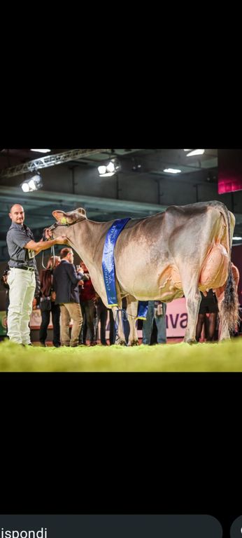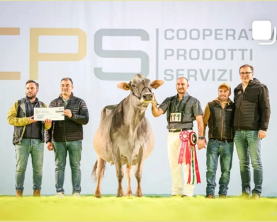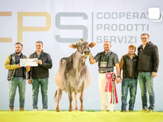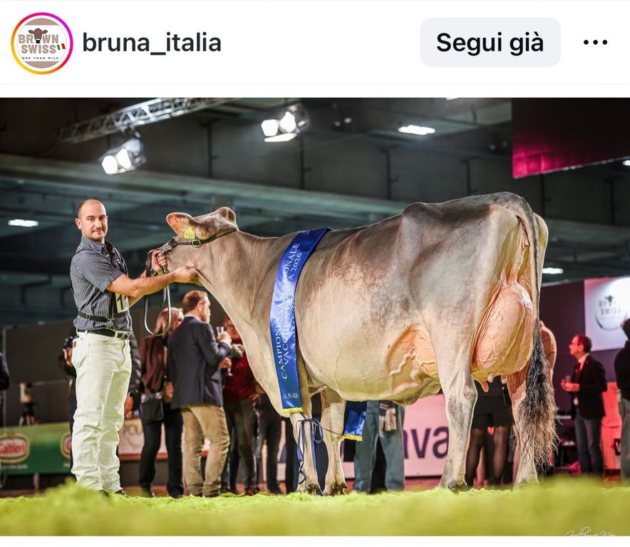 La vacca ha infatti conquistato, una dopo l’altra, le prime due categorie di appartenenza, per poi imporsi nella finalissima e aggiudicarsi il titolo più ambito: quello di campionessa assoluta della razza bruna 2026. Un successo costruito passo dopo passo, che ha portato Mirina a salire sul gradino più alto del podio, premiata con coccarda, coppe e riconoscimenti simbolo di un traguardo prestigioso nel panorama zootecnico nazionale.