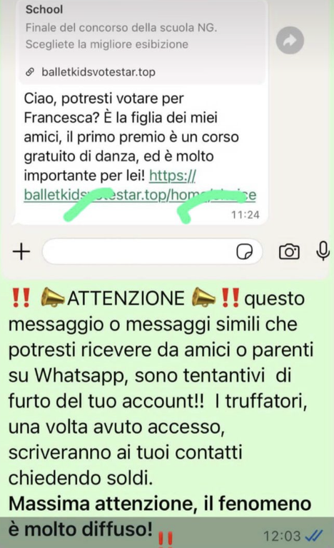 Una volta inserito, il controllo dell’account passa immediatamente nelle mani dei criminali informatici. Nel giro di pochi minuti la vittima viene disconnessa dall’applicazione, perde l’accesso al proprio profilo e, senza rendersene conto, diventa il veicolo principale della diffusione della truffa. I truffatori iniziano infatti a inoltrare lo stesso messaggio a tutti i contatti presenti nella rubrica, facendo propagare il raggiro in modo esponenziale.