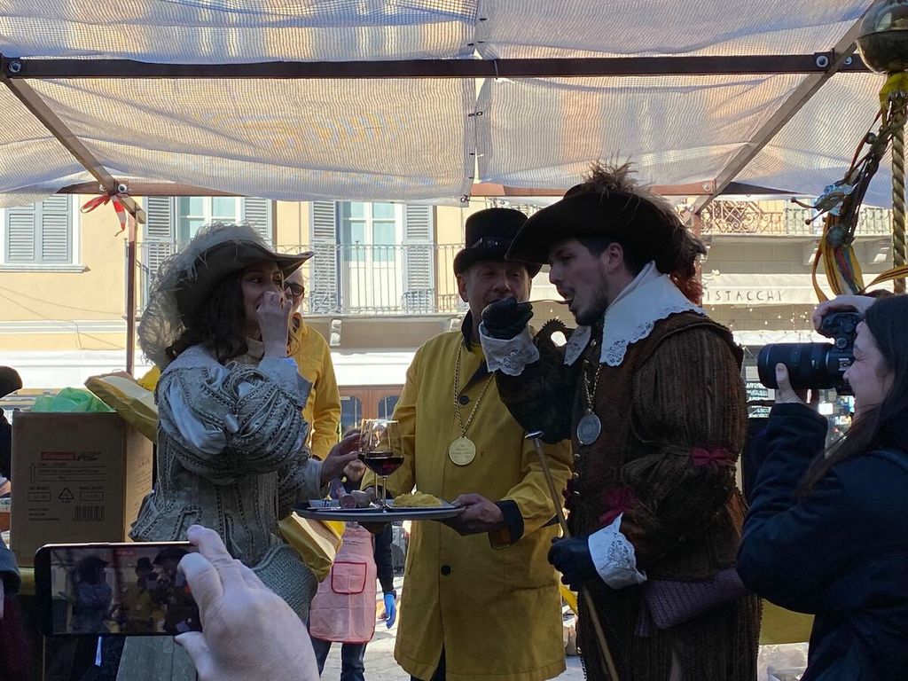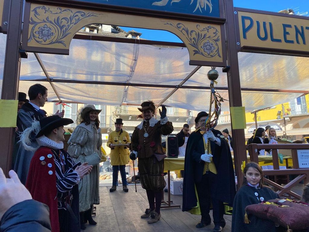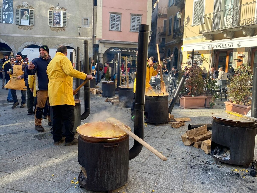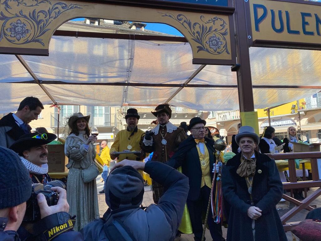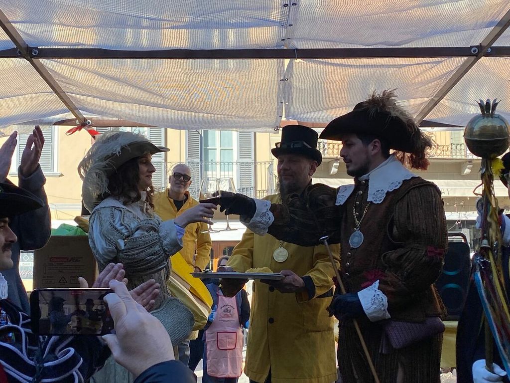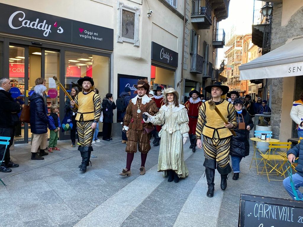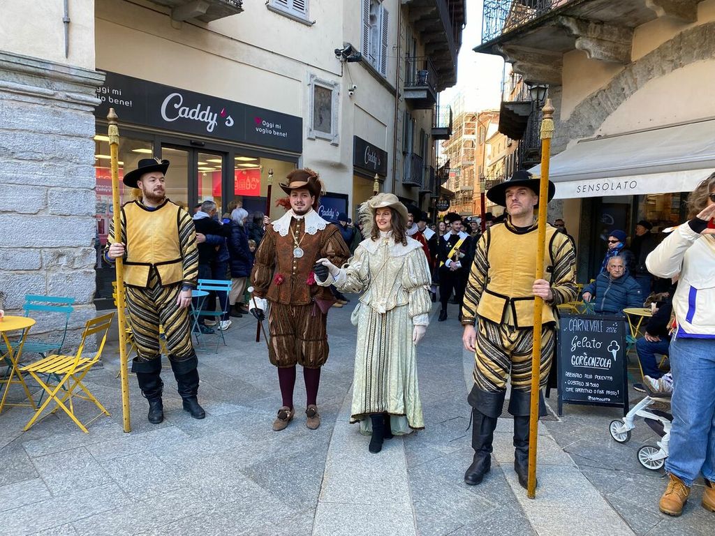 Si sono ufficialmente aperti i festeggiamenti per la giornata clou del Carnevale Domese 2026. Nella mattinata di oggi, domenica 15 febbraio, la Corte di Mattarella ha fatto il suo ingresso in piazza Mercato al termine di una breve sfilata partita da piazza Cavour. Sul palco allestito nel “salotto della città”, la prima delle tante tradizioni che andranno in scena oggi: l’assaggio del salamino da parte della Contessa di Mattarella, che dà il via alla distribuzione di pulenta e sciriuii preparata in piazza.