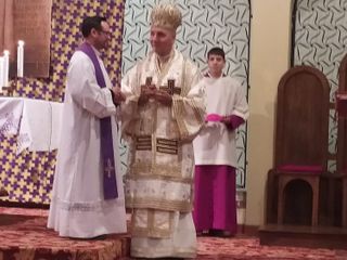 Il rettore del Sacro Monte Calvario don Davide Busoni al termine della messa ha donato al vescovo di Oradea una reliquia del Beato Rosmini. «Una delle cose più importanti del pontificato di Papa Leone XIV è la comunione quello vissuto oggi è stato un bel momento di comunione ecclesiale con un vescovo greco cattolico che ci fatto sentire la testimonianza della chiesa dell'Est. Una chiesa che ha sofferto ma che ha saputo donarsi, proprio come Rosmini».