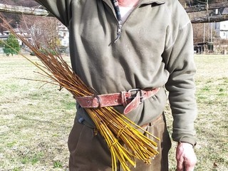 In questi giorni è facile incontrare Plom con il suo Ape verde carico di salici e pali di legno. Le sue sono ormai quasi le uniche topie rimaste, sostituisce i pali in legno marci e lega la vigna.