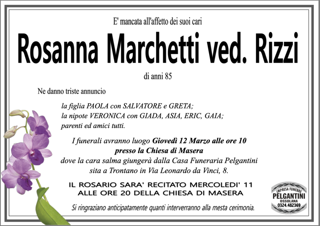 Rosanna Marchetti ved. Rizzi di anni 85
