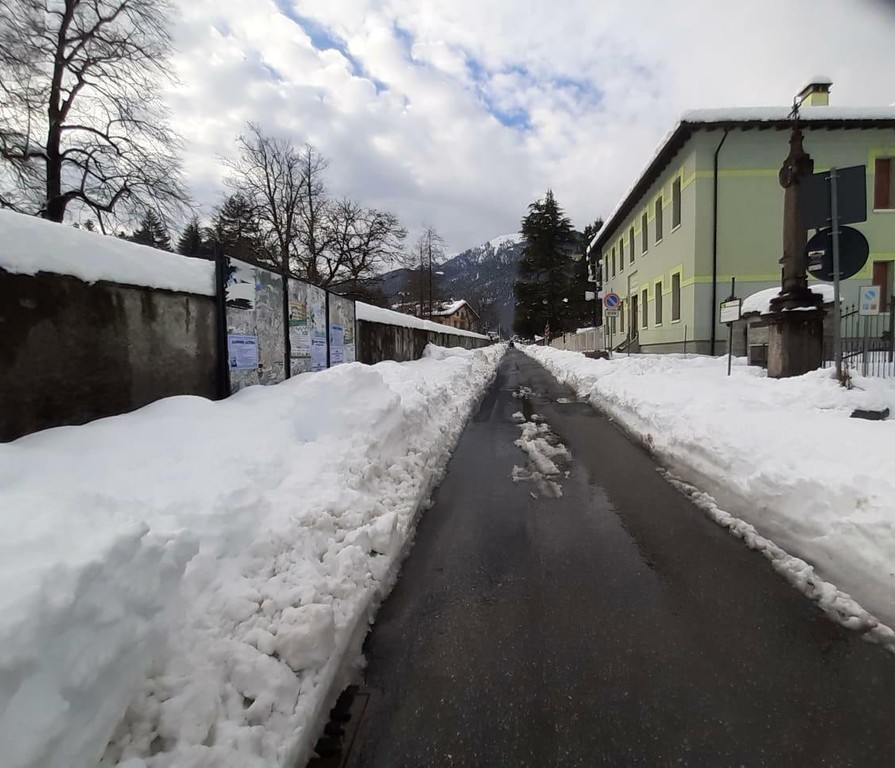 Le previsioni per domani annunciano il ritorno del sole, ma la realtà di oggi è diversa: la neve da rimuovere è ancora tanta.