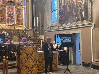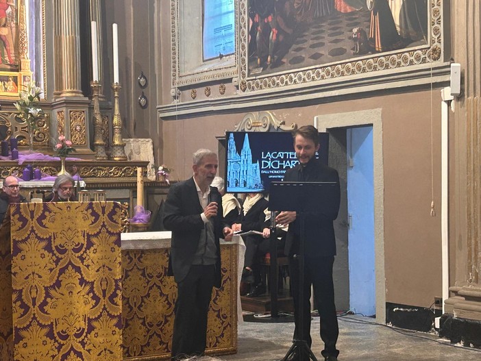 Letture di meditazioni tratte da Charles Péguy, interpretate da Matteo Minetti, si sono alternate a brani musicali eseguiti dal coro Nitida Stella e a momenti d’organo con Roberto Olzer, mentre le immagini delle vetrate della Cattedrale di Chartres hanno fatto da suggestivo sfondo.