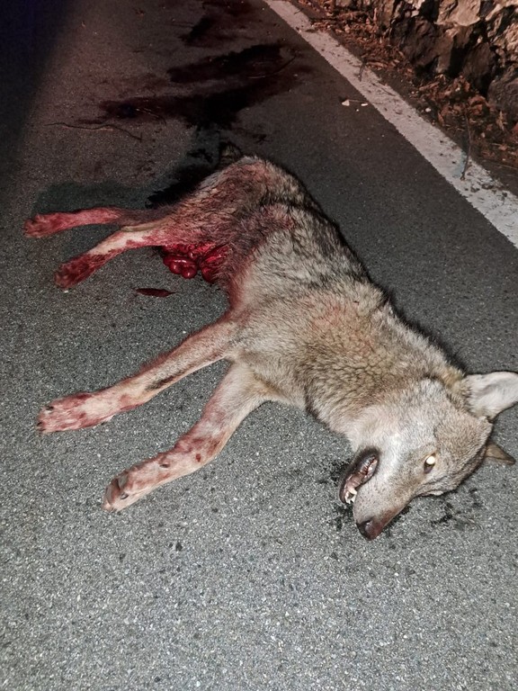 Il ritrovamento è avvenuto lungo la strada provinciale per San Domenico. Secondo quanto ricostruito, l’animale, nel tentativo di superare una recinzione in ferro che delimita una proprietà privata, si sarebbe procurato una grave ferita al basso ventre. La lesione ha provocato la fuoriuscita delle viscere e, dopo aver percorso alcune decine di metri, il lupo è crollato al suolo, dove è stato successivamente recuperato dagli agenti.