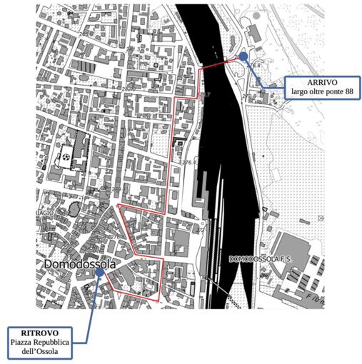 Il percorso interesserà: Piazza Repubblica dell’Ossola, via Francioli, corso del Popolo, corso Moneta, corso Ferraris, via Marconi, via Gramsci, via De Gasperi, via Castellazzo, via Cavalieri Vittorio Veneto e ponte dell’88.