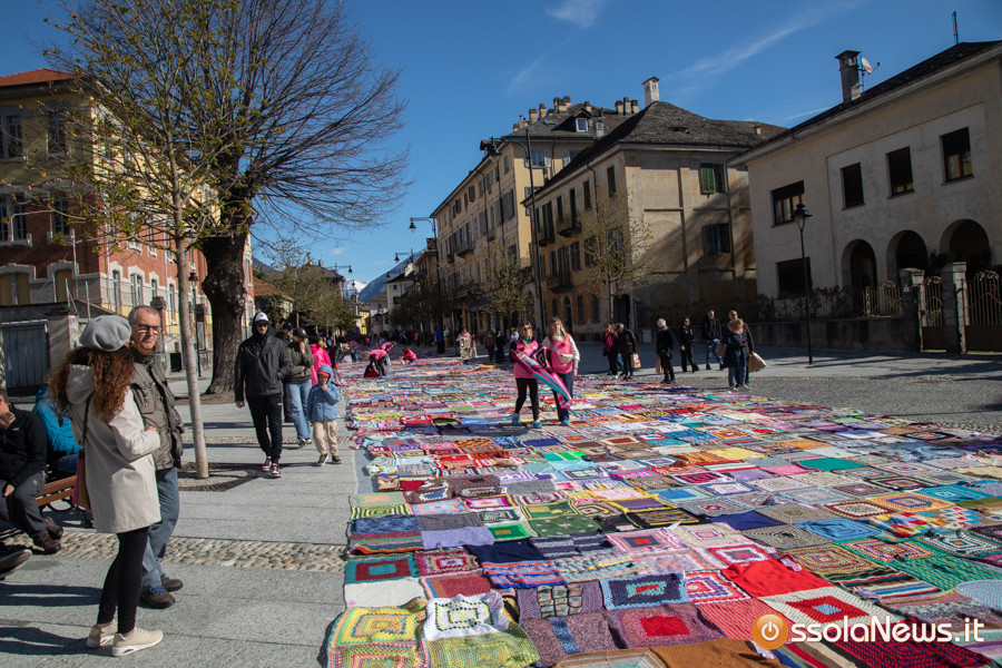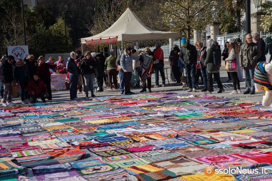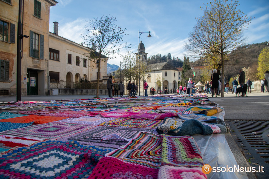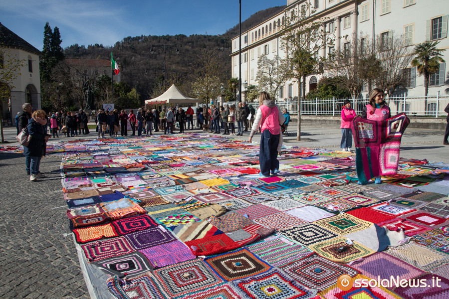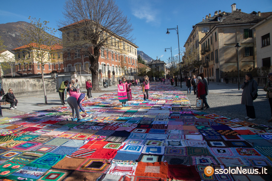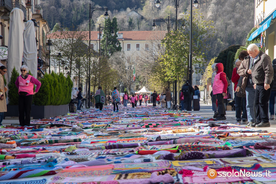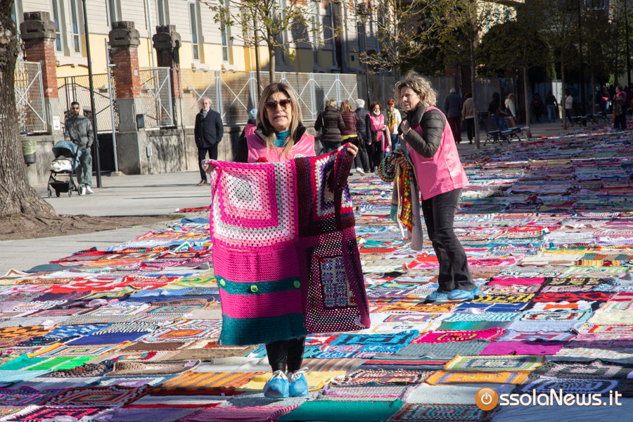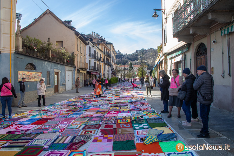 Dalle prime ore del mattino, via Rosmini si è trasformata in un grande tappeto colorato: oltre 1.500 coperte realizzate in questi mesi grazie al lavoro di circa cento donne, non solo del Vco, che hanno lavorato a maglia o all’uncinetto unendo i quadrati con il filo rosso simbolo dell’iniziativa. Ogni coperta è disponibile con un’offerta minima di 20 euro.