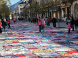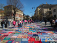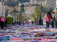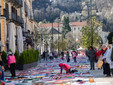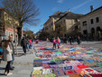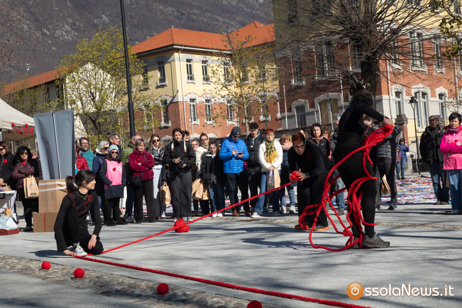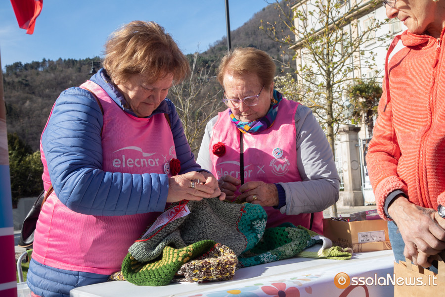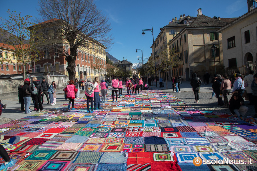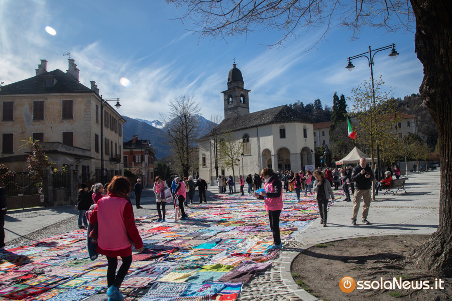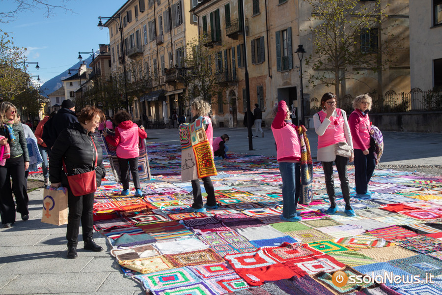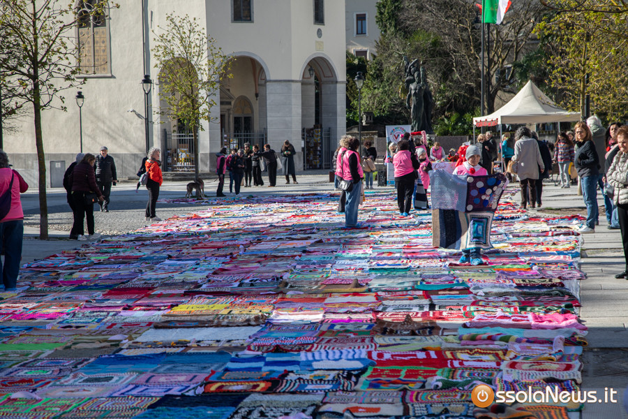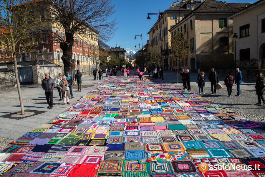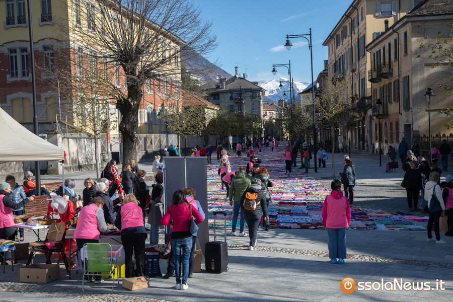 Dalle prime ore del mattino, via Rosmini si è trasformata in un grande tappeto colorato: oltre 1.500 coperte realizzate in questi mesi grazie al lavoro di circa cento donne, non solo del Vco, che hanno lavorato a maglia o all’uncinetto unendo i quadrati con il filo rosso simbolo dell’iniziativa. Ogni coperta è disponibile con un’offerta minima di 20 euro.