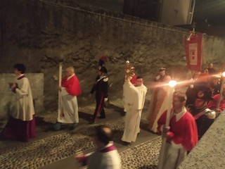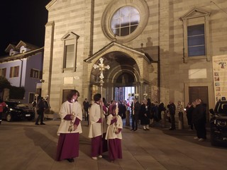 Al termine dell'omelia il parroco ha lavato i piedi a dodici ragazzi e ragazze prossimi alla Cresima. Dopo la messa, che è stata concelebrata da don Alessandro Maffioli, don Giacomo Bovio e don Giuseppe Ottina e animata dalla corale, è seguita la processione lungo alcune vie di Domodossola per poi giungere nella chiesetta dell'ospedale.