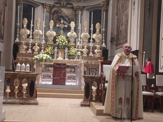 Centinaia di persone hanno partecipato ieri alla Messa in Coena Domini in Collegiata con la lavanda dei piedi e al termine alla solenne processione Eucaristica del Giovedì Santo. Il parroco don Vincenzo Barone all'omelia ha espresso la gioia duplice: per il momento che ha aperto il Triduo Pasquale con la celebrazione del 'istituzione dell'Eucaristia e della lavanda dei piedi e poi gioia anche per i lavori di restauro della chiesa.