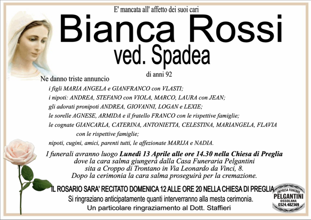 Bianca Rossi ved. Spadea di anni 92