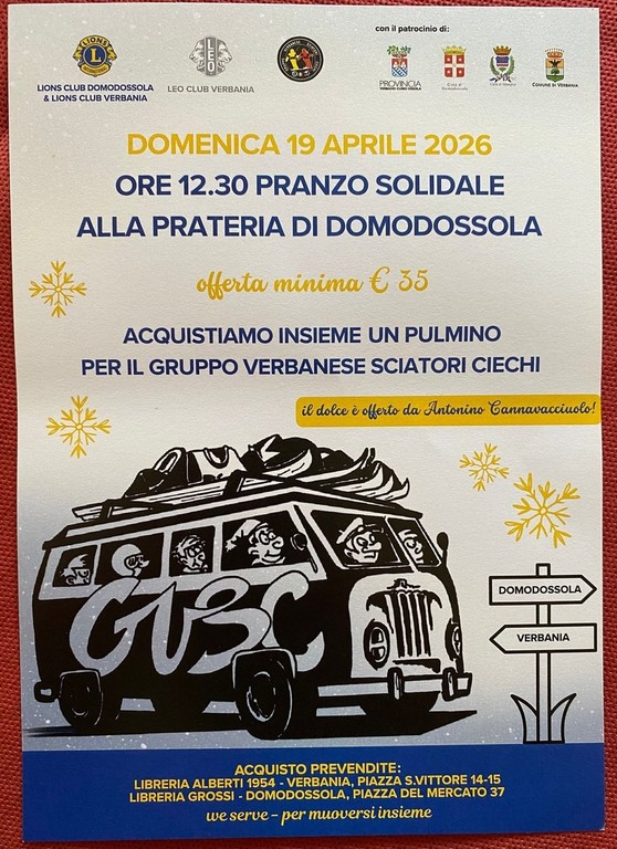 Una giornata all’insegna della condivisione, della solidarietà e dell’inclusione: è quanto organizzato dai Lions Club di Domodossola e Verbania domenica 19 aprile alla Prateria di Domodossola. Si tratta di un pranzo solidale promosso con l’obiettivo di raccogliere fondi per l’acquisto di un pulmino per il Gruppo Verbanese Sciatori Ciechi (Gvsc).