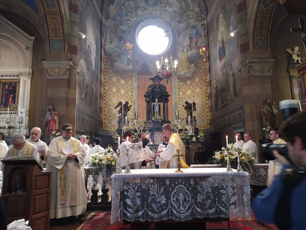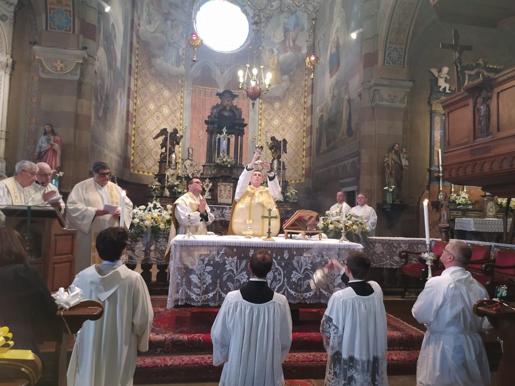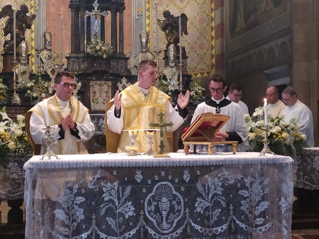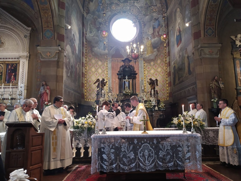 Un evento eccezionale anche considerando che l’ultimo sacerdote di Masera fu il compianto don Piero Ceretti, ordinato 60 anni fa. I due sacerdoti, ordinati ieri a Novara dal Vescovo insieme ad altri quattro diaconi, hanno celebrato questa mattina la loro Prima Messa. In apertura vi è stato un breve saluto di don Luigi Preioni, poi è iniziata la celebrazione, intensa di emozione, gioia e raccoglimento. L’omelia è stata tenuta da don Gabriele Romagnoli, sacerdote di riferimento del movimento cattolico di Comunione e Liberazione, che ha avuto un ruolo importante nella scelta vocazionale dei due giovani.