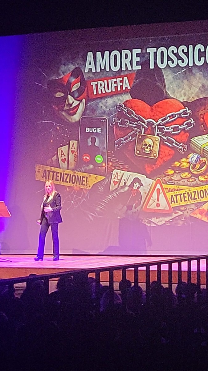 Con un linguaggio chiaro ma puntuale, la criminologa ha spiegato come l’amore possa lentamente spegnere l’identità di chi lo vive, cancellare i confini personali e sgretolare l’autostima, fino a generare un cortocircuito fatto di paura, umiliazione e bisogno. Un percorso che ha alternato termini tecnici e passaggi fortemente emotivi, portando sul palco esempi e situazioni riconoscibili, capaci di colpire nel profondo.