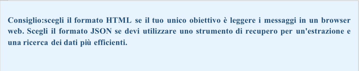 L'utente deve selezionare il formato e l'intervallo di dati desiderati . Dopodiché, deve scegliere tra HTML e JSON.