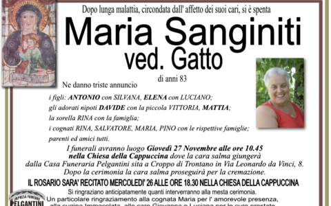 Tobia Franca Emilia "Milly" ved. Bendinelli di anni 85